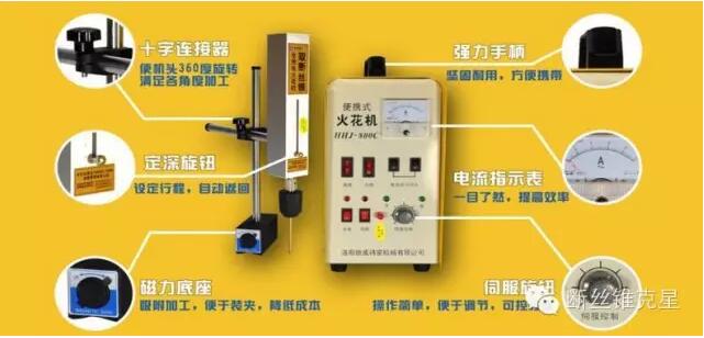 HHJ系列、YT系列“取斷絲錐電火花機”,體積小、重量輕,可方便去除折斷在任意大小工件中的斷絲錐、斷鉆頭等,尤其適用于難于在電火花機床上加工的大型工件。