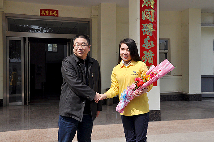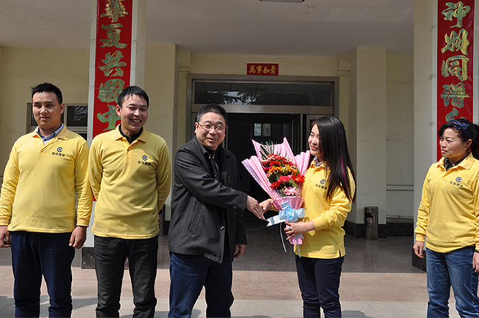 3月21日下午,總經理丁向陽帶領銷售財務部及辦公室全體在崗人員,帶著鮮花在辦公樓熱情迎候載譽歸來的信成戰士。在隊長黃利利的帶領下,劉向前、侯小紅、牛海波笑容滿面地走下公司的奔馳汽車,向迎接他們的公司領導和同事熱情握手致意。