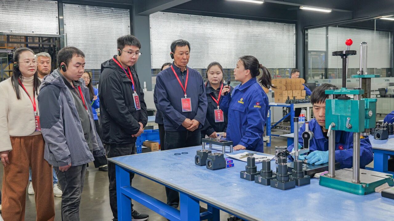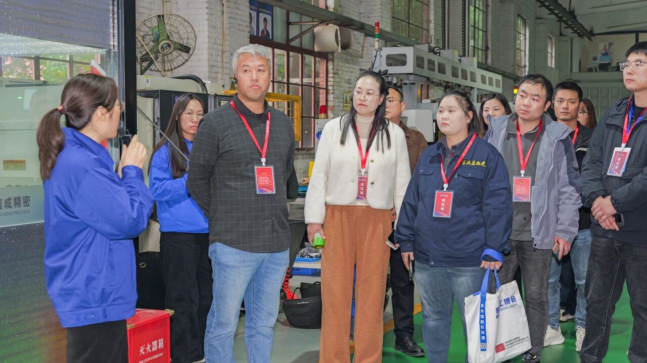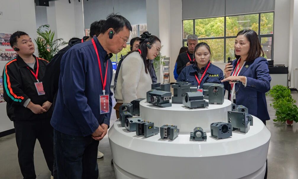 在丁董與袁總帶領(lǐng)下,嘉賓們分為紅、藍(lán)兩隊(duì),有序參觀了公司銑加工車間、車床刀座柔性生產(chǎn)線、裝配車間機(jī)電產(chǎn)品線、檢測檢驗(yàn)中心及車加工車間。