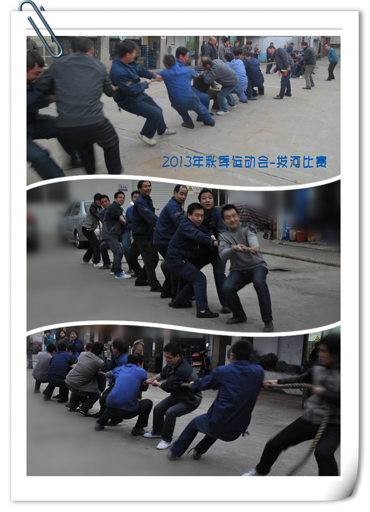為豐富員工的文體生活,搭建員工之間感情溝通的橋梁,營造企業(yè)團結和諧氛圍,激勵員工奮發(fā)向上的團隊協作精神,公司于2013年11月6日—2013年11月11日舉行了拔河比賽,各部門都積極配合,員工踴躍參加。