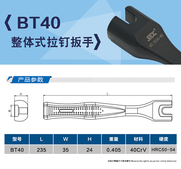 BT40整體式拉釘扳手63 1836-40刀柄周邊工具 簡介: 咨詢熱線:400-6700-379 留言給我們 產(chǎn)品詳細(xì) 上一篇:整體式拉釘扳手631836-30 下一篇:ER25-32-40UM整體式螺母扳手632692